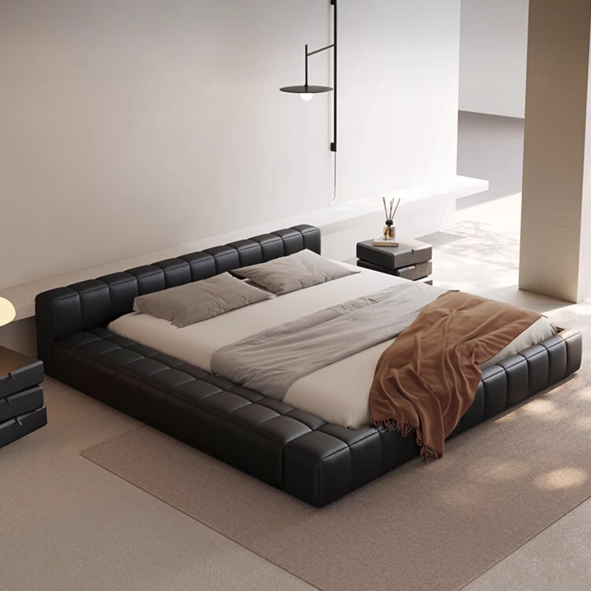Modern Platform Bed Frame with Vertical Channel Leather Headboard