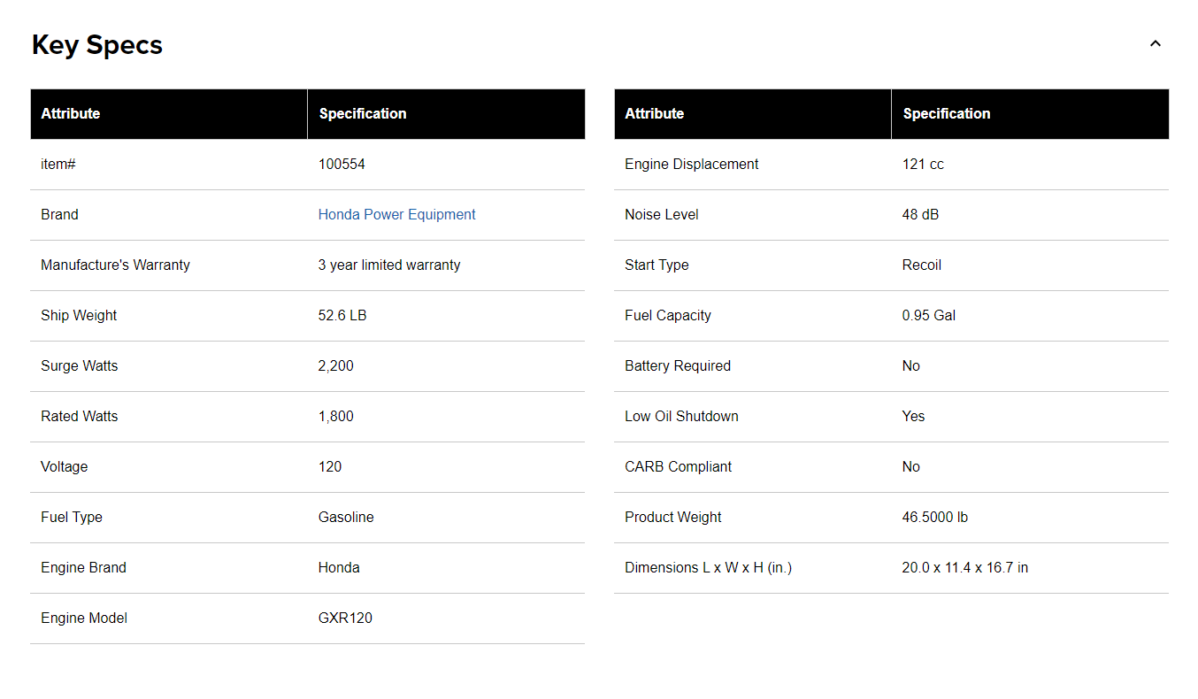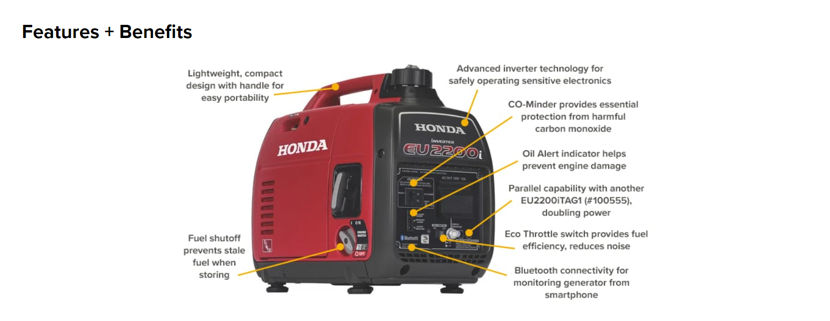 Honda Inverter Generator, 2200 Surge Watts, 1800 Rated Watts, Model# EU2200ITAN
