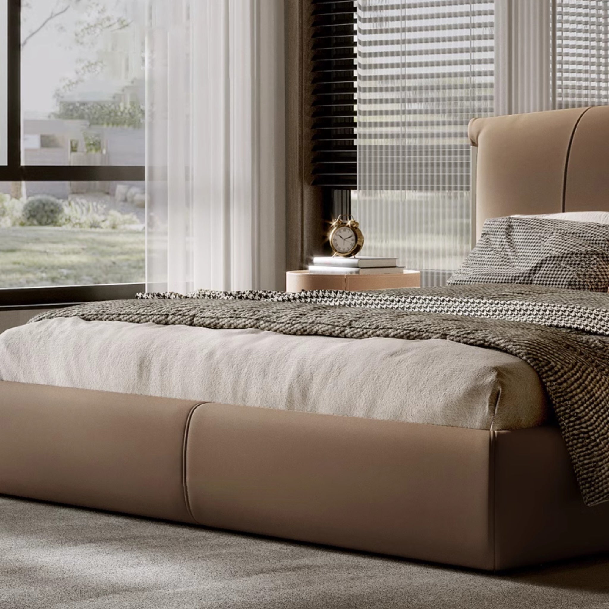 Modern Platform Bed Frame with Vertical Channel Leather Headboard